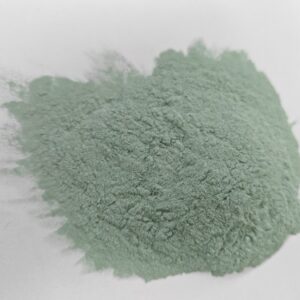 Yeşil silisyum karbür (SiC), kuvars kumu, petrol koku ve sofra tuzu karışımı kullanılarak yüksek sıcaklıklarda elektrik dirençli fırında üretilen, sentetik, ultra sert bir aşındırıcı malzemedir; saflık kontrolü için silika ve karbon da ilave edilmiştir. Ayırt edici yeşil rengi, tipik olarak %99’dan fazla silisyum karbür kristali içermesi ve siyah muadiline kıyasla minimum metalik safsızlık içermesi nedeniyle yüksek saflığından gelir. Bu da üstün sertlik, kırılganlık ve keskinlik sağlar ve onu elmas ve bor karbürden sonra en sert malzemelerden biri yapar.